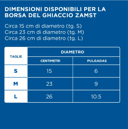 ICE BAG di Zamst è una borsa del ghiaccio multistrato di elevata qualità, ideale per il trattamento di primo soccorso di lesioni, defaticamento post-esercizio, protocollo R.I.C.E terapia del freddo e per raffreddamento da colpo di calore. Ottimo per traumi muscolari e alle articolazioni in genere.